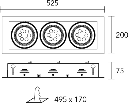 MEDIDAS 525 x 200 x 75 mm PERFORACIÓN: 495 x 170 mm