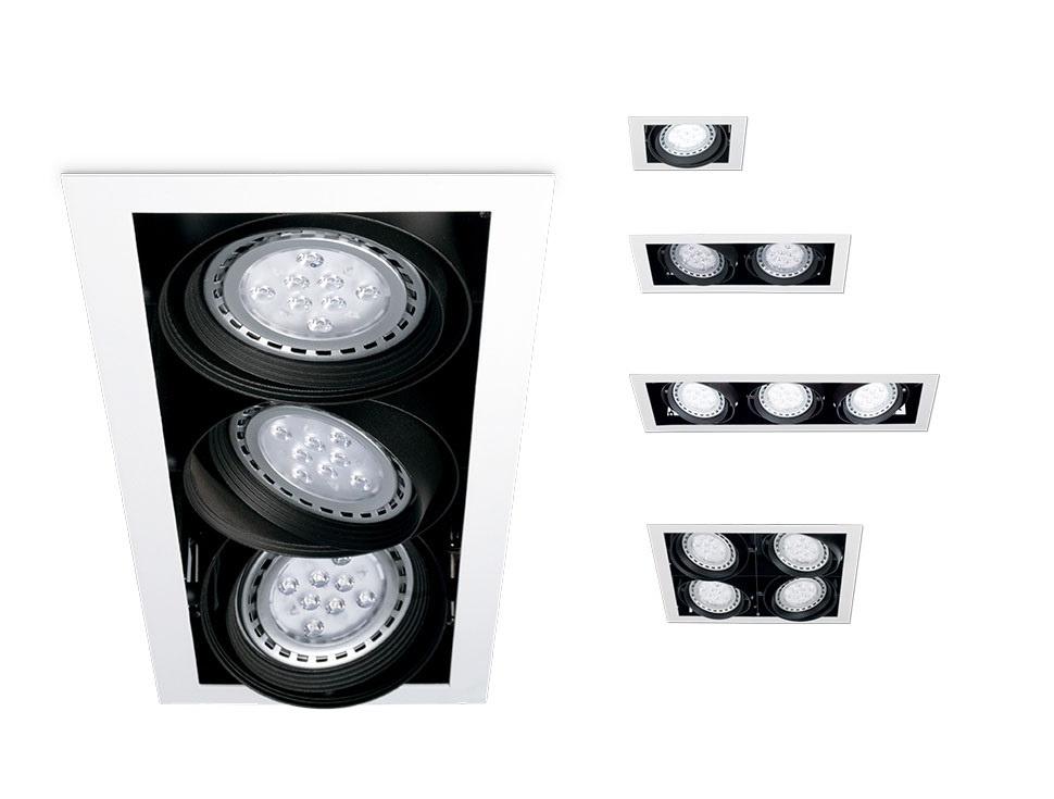 SPOT EMBUTIDO DE 4 LUZ AR111 MOVIL CON ANTIDESLUMBRANTE EN COLOR BLANCO O NEGRO CUADRADO