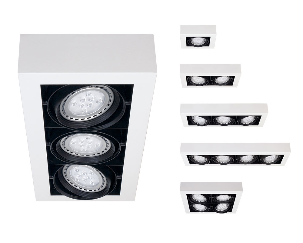 PLAFON 3 LUZ LED AR111 DE ACERO BLANCO Y ARO ANTIDEZLUMBRANTE DE ALUMINIO NEGRO