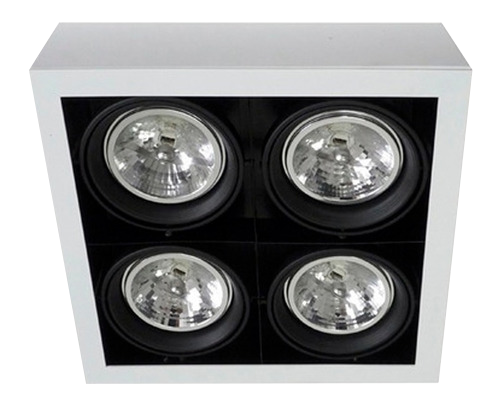 PLAFON 4 LUZ LED AR111 DE ACERO BLANCO Y ARO ANTIDEZLUMBRANTE DE ALUMINIO NEGRO