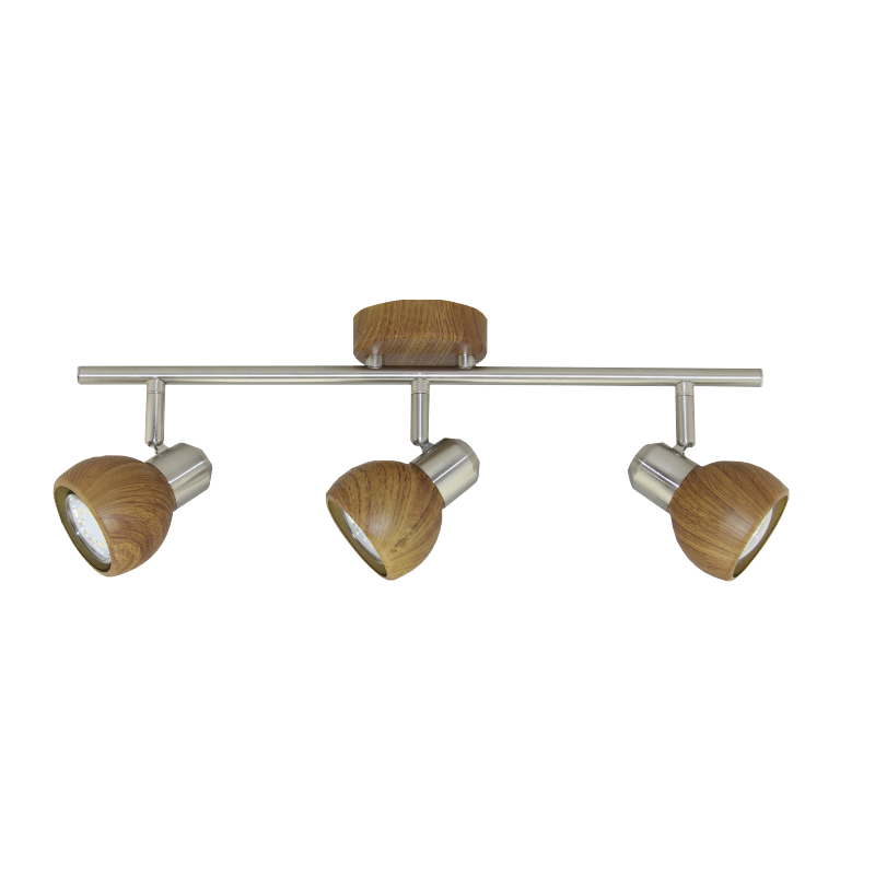 APLIQUE / SPOT DE 3 LUCES PAR16 DIRECCIONABLES COLOR MADERA CON DETALLES NIQUELADOS
