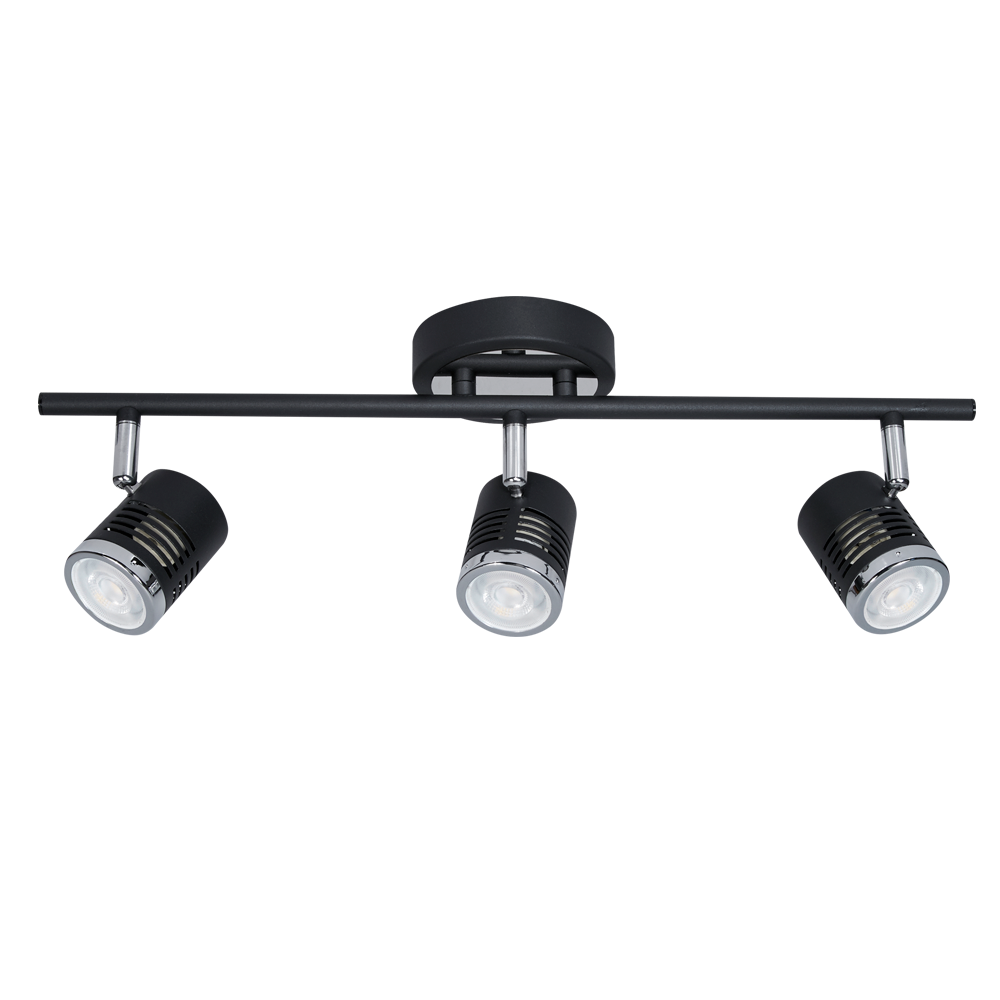 SPOT / APLIQUE DE 3 LUCES PAR16 DE CHAPA NEGRA CON DETALLES EN CROMO